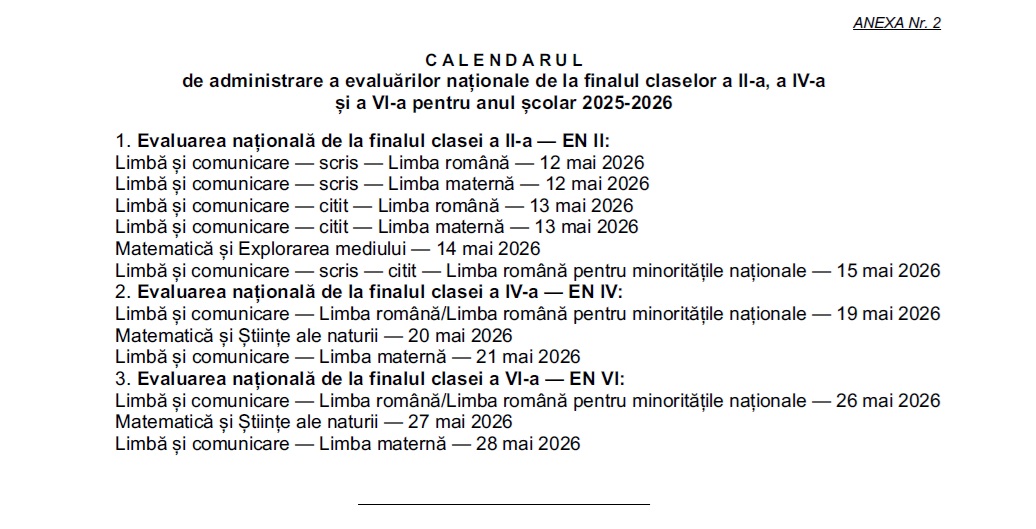 EVALUARE NATONALA II – IV – VI_AN SCOLAR 2026-2027