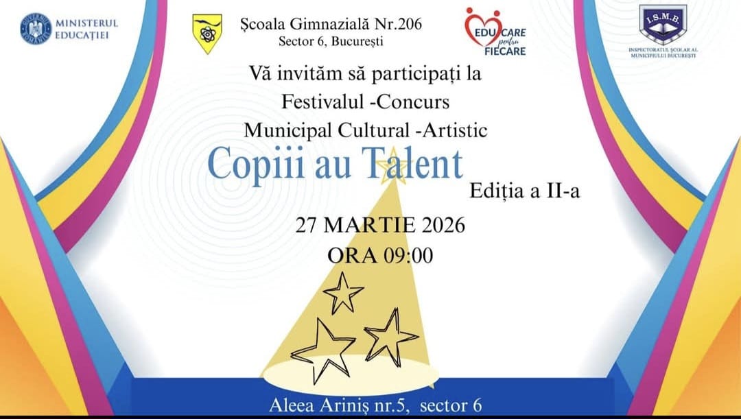 Pe 27 MARTIE 2026, va avea loc a doua ediție a Festivalului Muncipal ”Copiii au talent”, un eveniment care celebrează creativitatea, talentul și energia copiilor. Acest eveniment nu este doar un prilej de a-și exprima talentul, ci și de-a învăța importanța muncii în echipă, a perseverenței, o modalitate de dezvoltare a încrederii în propriile abilități.