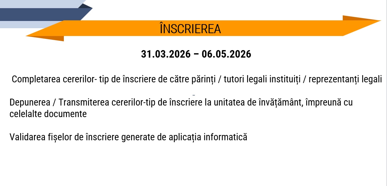 ÎNSCRIERE CLASA PREGĂTITOARE 2026 – 2027